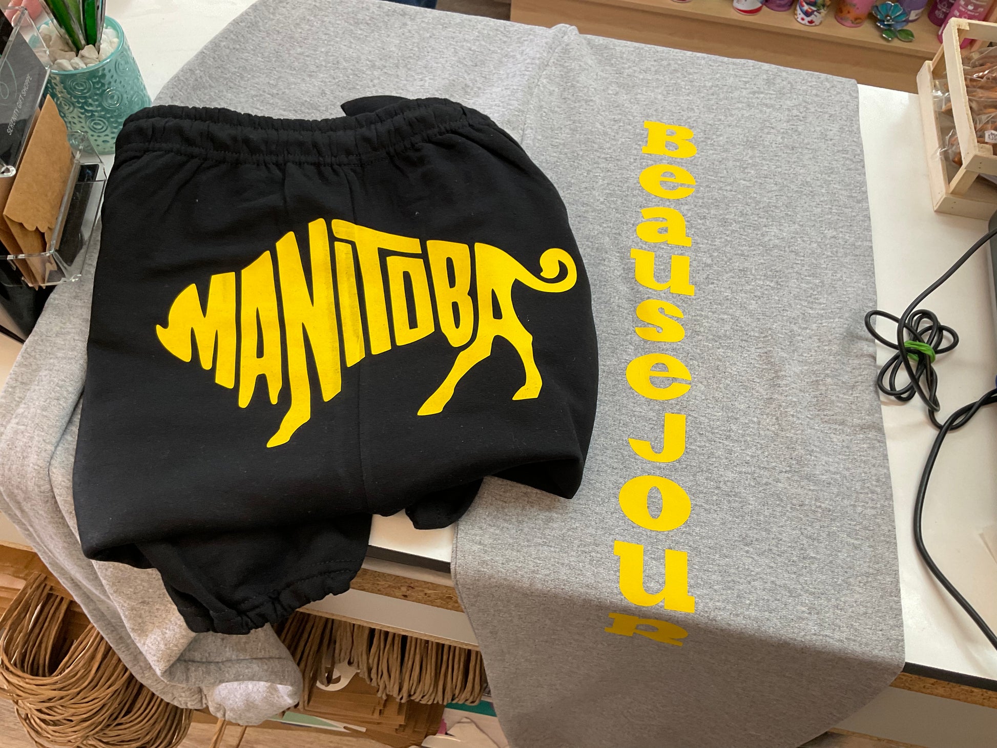 Different sizes and colors available. Says "Beausejour" down the leg and has the Manitoba Bison logo on the butt.