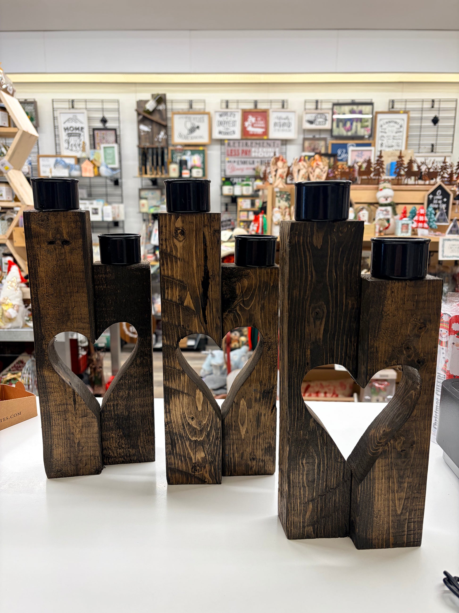 Handmade wooden Heart tea light holders.