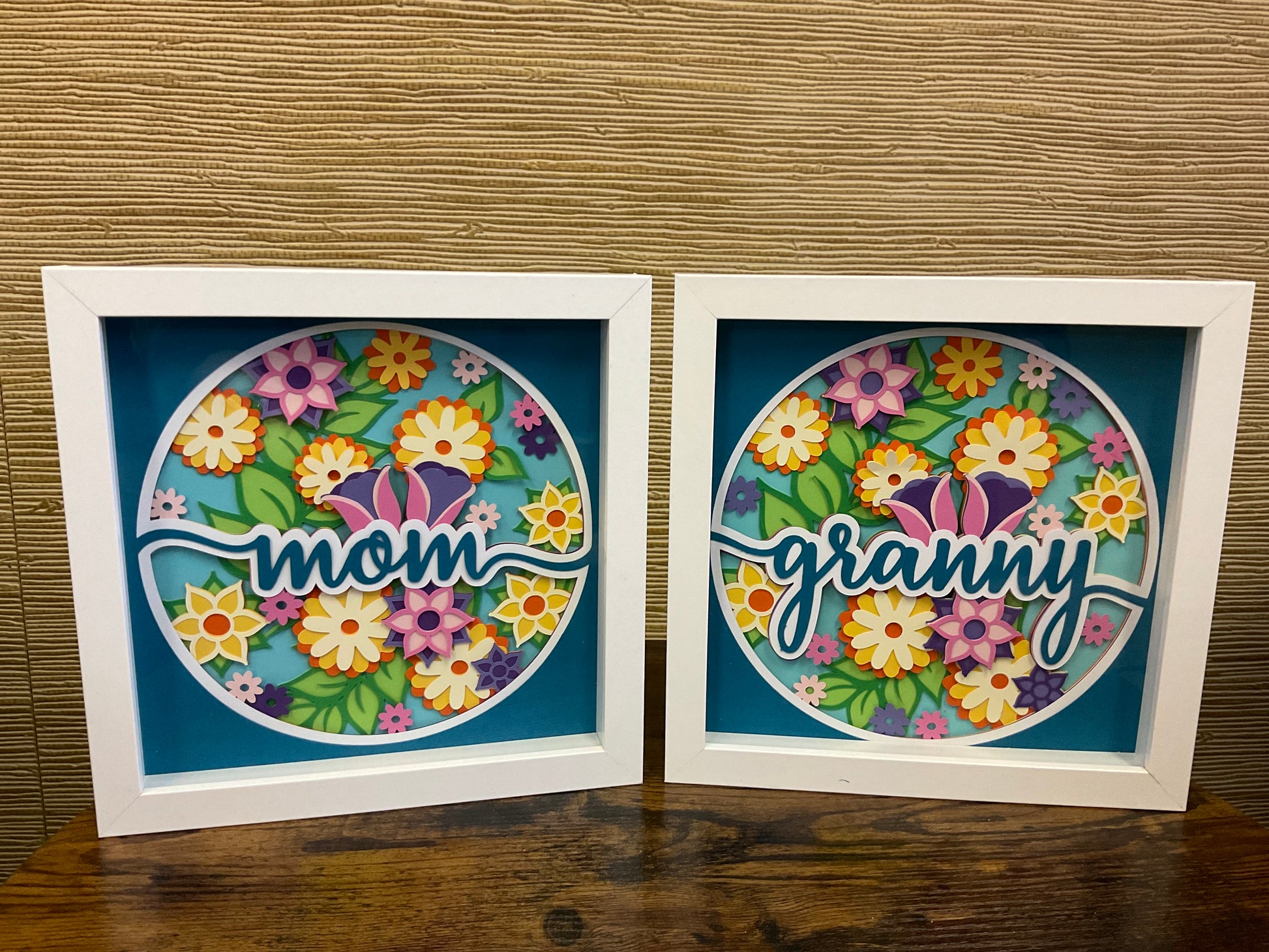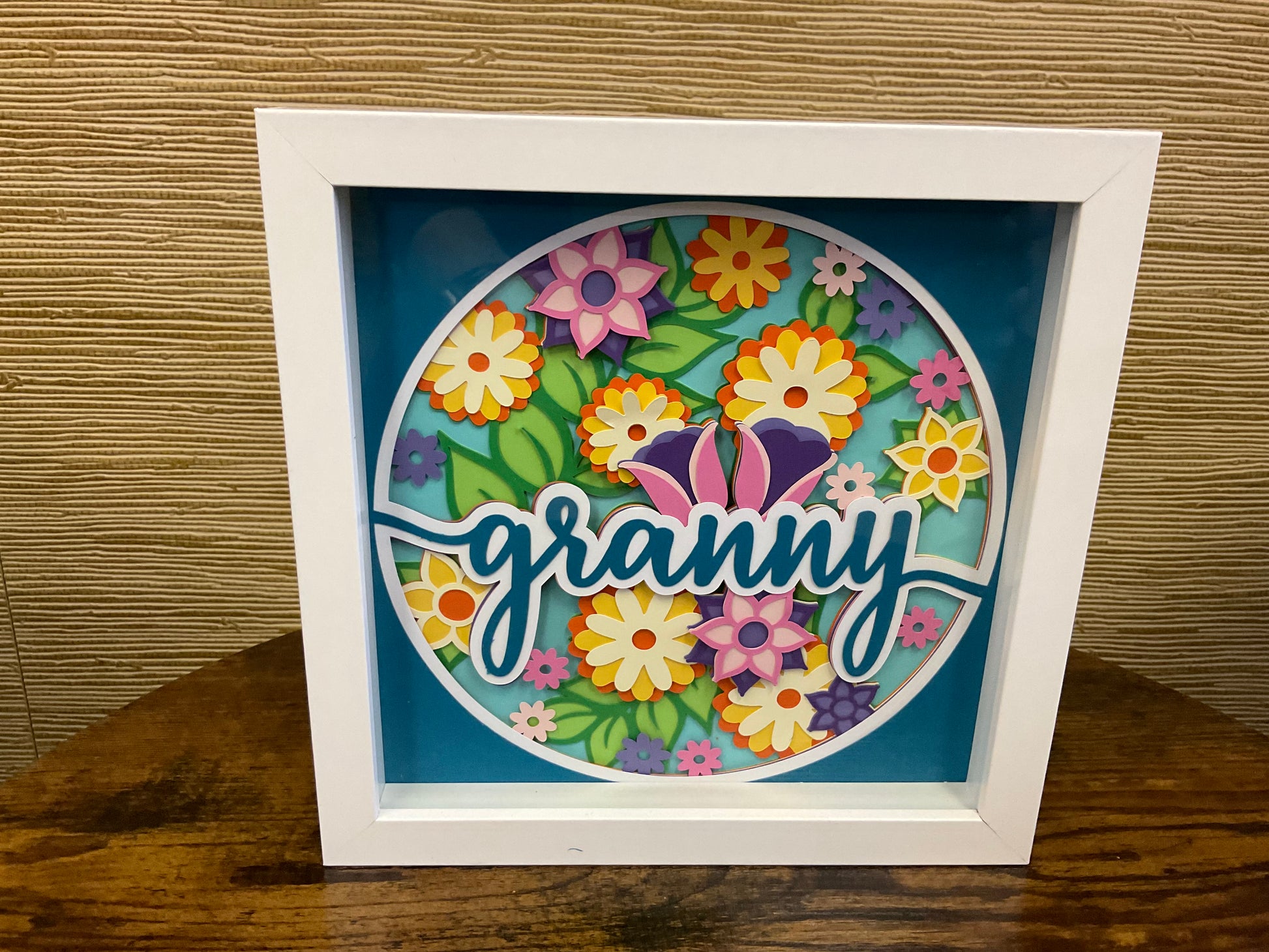 Personalized 8”x8” layered flower shadow box
