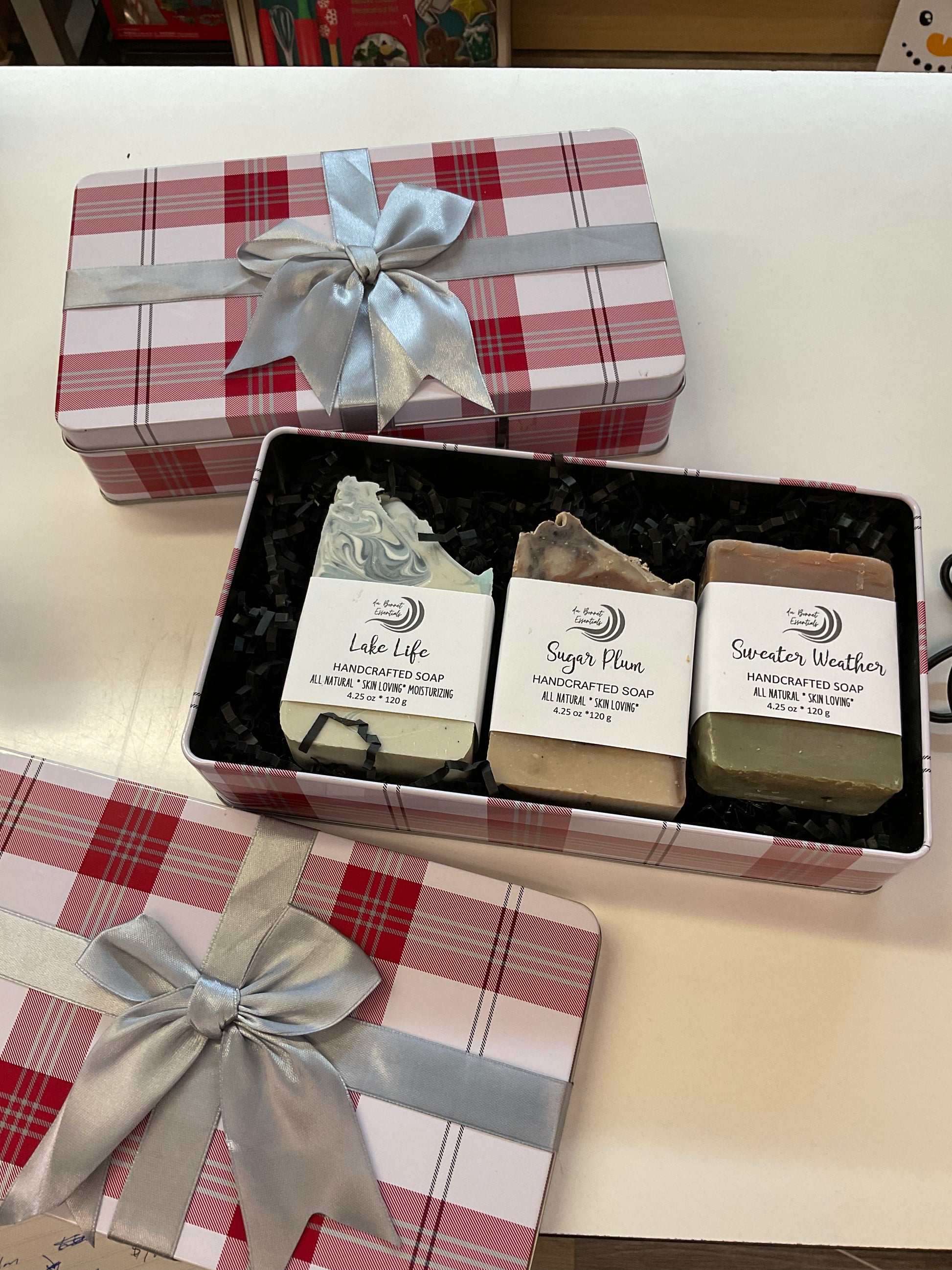 Boxed Gift Set with foaming sugar scrub, soap and bath bomb