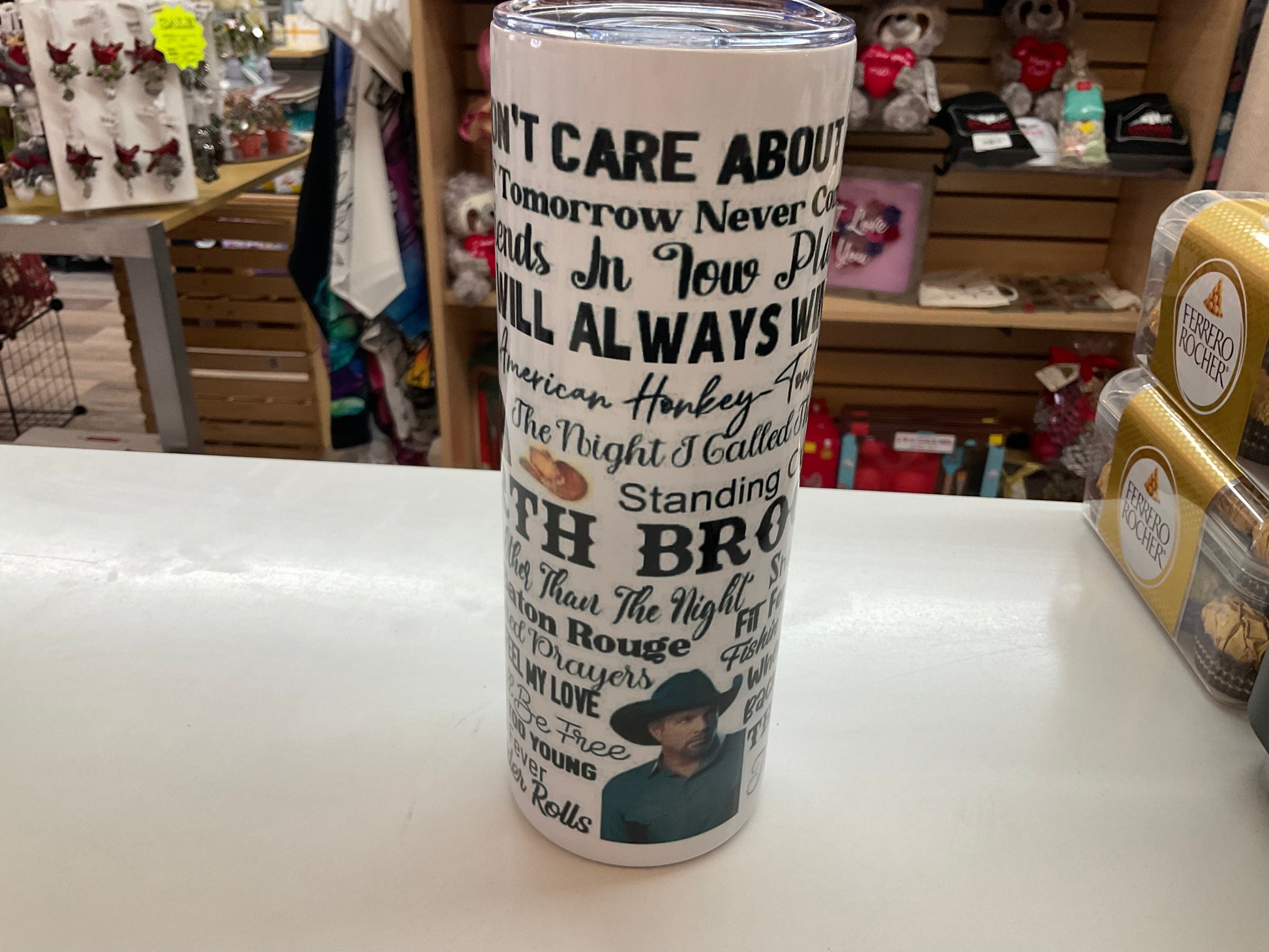 Different tumblers, both insulated and frosted, of different musicians