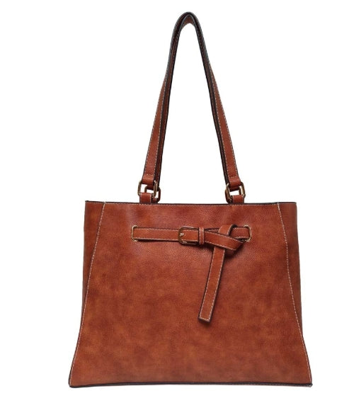 Large capacity tote bag with a tied bow in the front features a chic and feminine aesthetic.